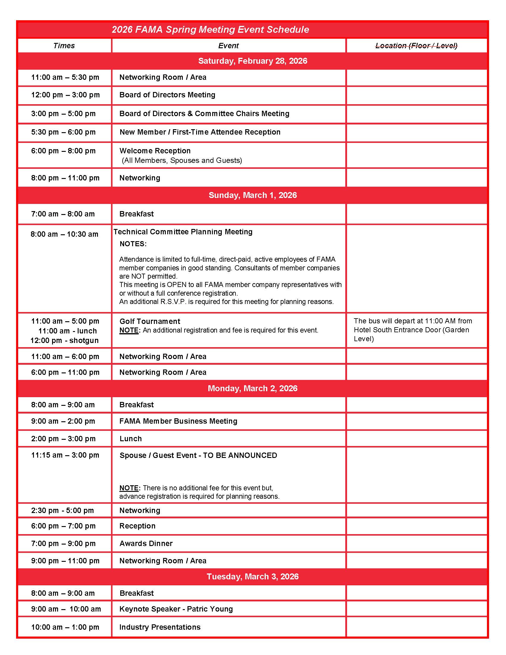 Saturday, February 28 – Tuesday, March 3, 2026